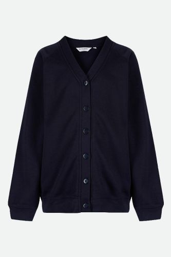 Self coloured button front cardigan with ribbed welt and cuffs and topstitch detail to strengthen seams.