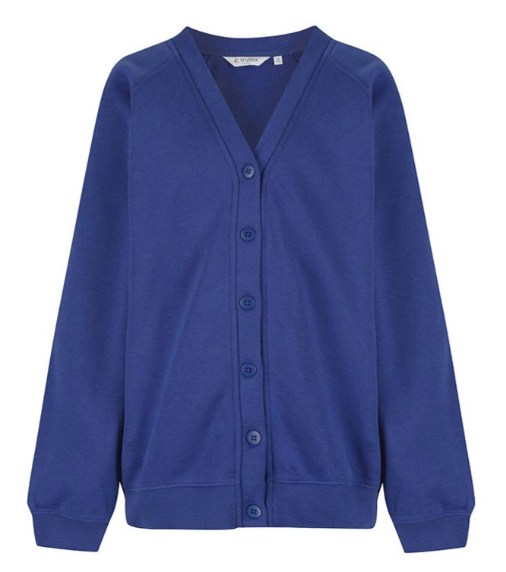 Self coloured button front cardigan with ribbed welt and cuffs and topstitch detail to strengthen seams.