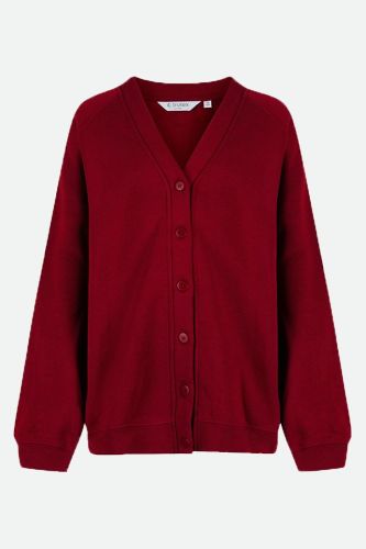 Self coloured button front cardigan with ribbed welt and cuffs and topstitch detail to strengthen seams.